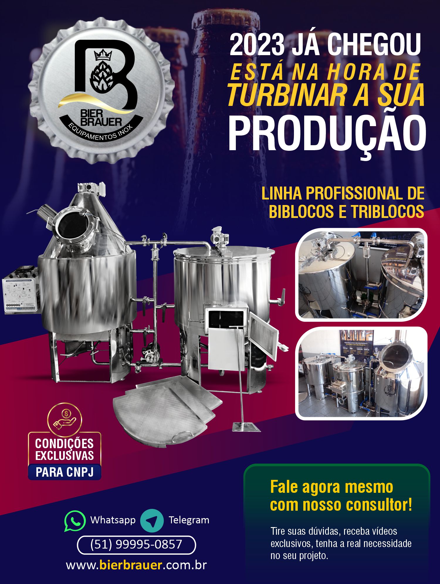 Fundada em 2015 e sendo 100% nacional, a Bier Brauer se destaca pelo desenvolvimento de sistemas Single Vessel para panelas automatizadas elétricas e fermentadores refrigerados em inox, além de uma linha completa de acessórios para a produção de cerveja artesanal. A empresa utiliza matérias-primas certificadas e reconhecidas pela qualidade, garantindo durabilidade, eficiência e confiança.