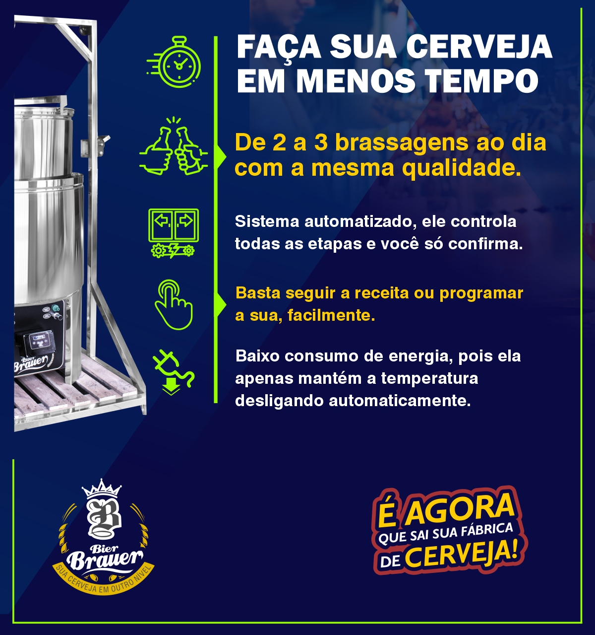Nosso compromisso com seriedade, respeito e consideração aos clientes fez com que a Bier Brauer conquistasse ampla credibilidade no mercado. Essa dedicação vai além da venda de equipamentos: buscamos sempre impulsionar o crescimento de cada cliente, alinhando inovação, suporte e excelência em atendimento.